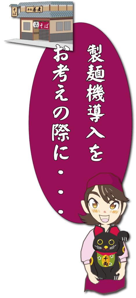 20cmの隙間さえあれば、既存の厨房に置くだけです。面倒な設置工事、製麵室も要りません。導入したその日から直ぐに製麺できます。ランニングコストが安く抑えらて導入のハードルが低くなります。